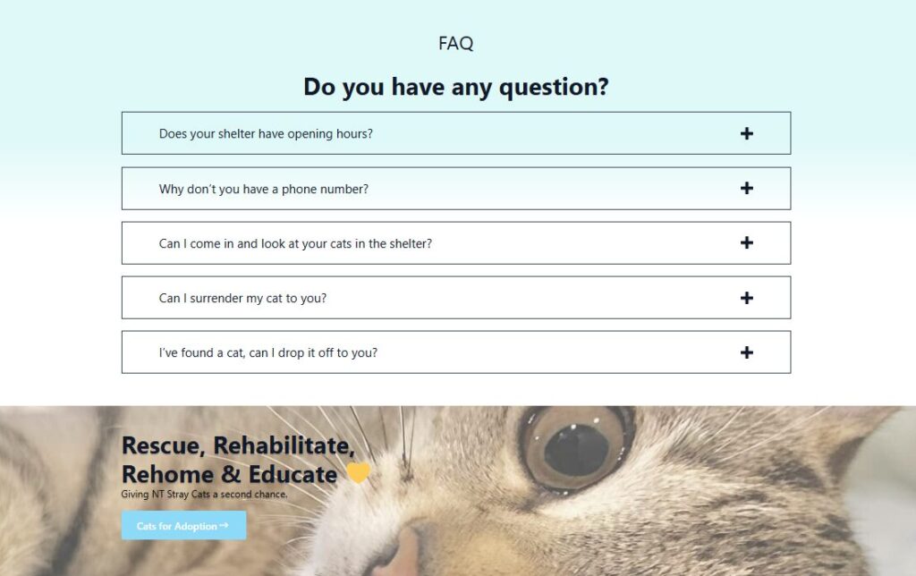 Potential adopters can easily view available cats, learn about the process, and get in touch, while the organisation continues to grow its reach within the community.