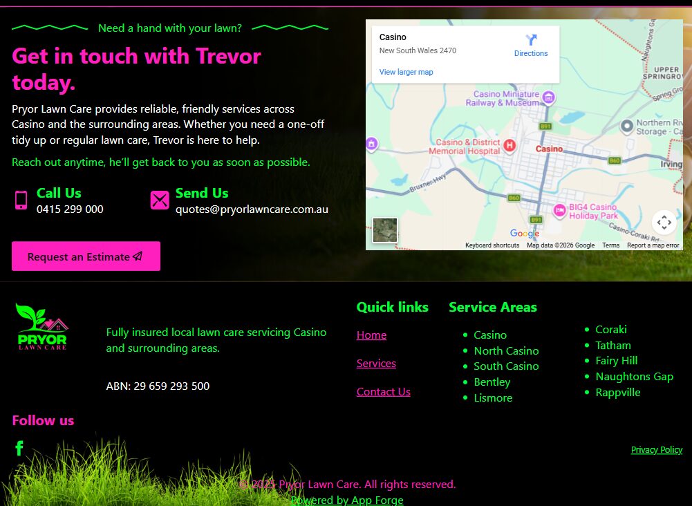 Project Type: Local Service Website Location: Casino, NSW & Surrounding Areas Platform: WordPress (Breakdance Builder) Client: Trevor Pryor